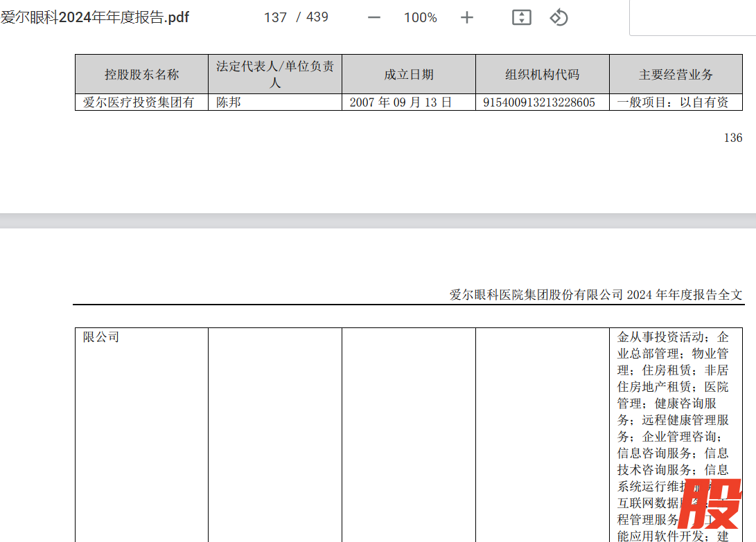 不过,据爱尔眼科2024年年报信息,爱尔医疗投资集团有限公司成立于2007年9月,陈邦为其法定代表人/单位负责人。